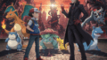 ラウンド1のフィールド制圧戦を表現。「水を操る」ポセイドンが、豪雨の中でカイオーガの動きを制限している様子を描写。
